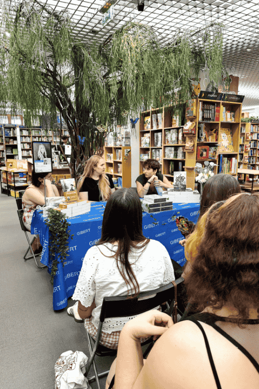 La rencontre a commencé dans une ambiance chaleureuse. Le public était varié : des fans de la première heure, des lecteurs curieux venus avec leurs questions préparées, et d’autres qui se laissaient simplement porter par la découverte. Les échanges se faisaient en anglais ou en français grâce à une traductrice, et Élise répondait avec bienveillance, humour et générosité, même aux questions les plus inattendues.