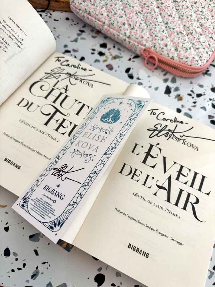 J’ai alors appris que la saga Air Awakens (L’Éveil de l’air, aux éditions Big Bang en France) est en réalité la première qu’Elise Kova ait écrite et auto-publiée en aout 2015. C’est cette histoire, née de son imagination débordante, qui l’a révélée au monde de la fantasy romantique. La saga complète compte cinq tomes, déjà tous disponibles en anglais. En France, seuls les deux premiers ont été publiés, mais la suite arrive très bientôt…